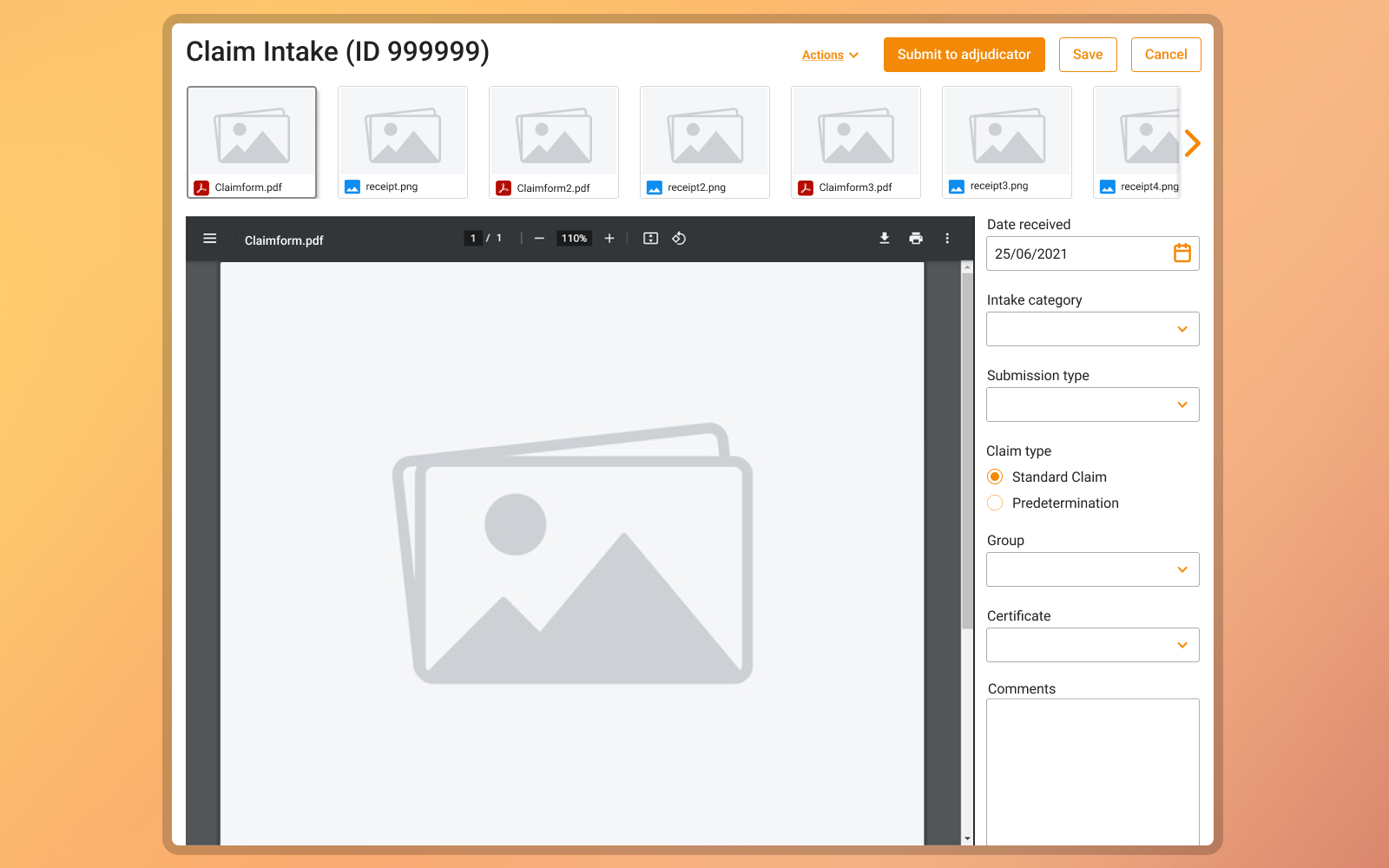 Reducing manual effort for adjudicators by introducing a centralized digital claim intake workflow